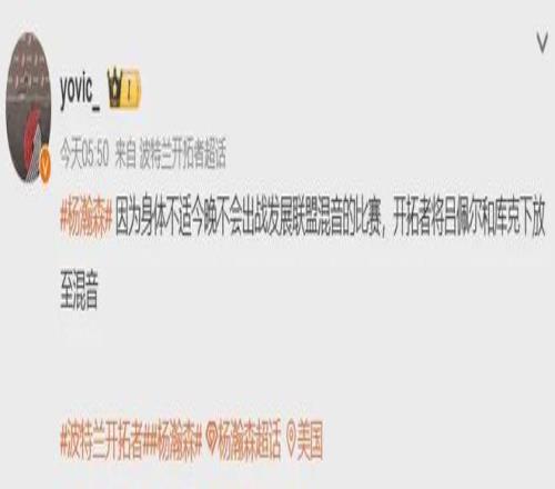 杨瀚森原本计划被球队安排去打这场球,最终没去,就是因为他身体不适,有点头晕头痛。