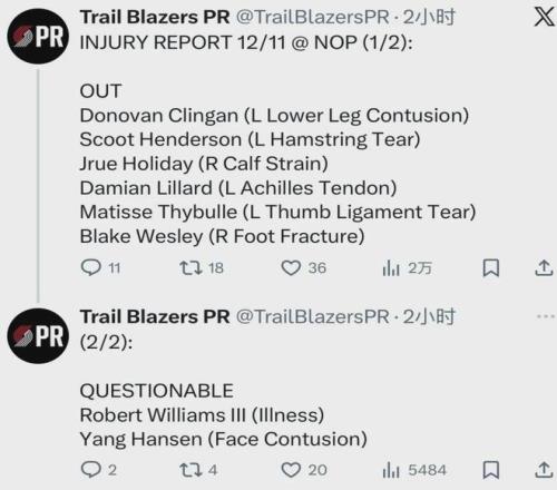 在大洋彼岸的美国,也有类似的情况,仅就开拓者队内都有不少球员出现生病的情况,导致非战斗减员。